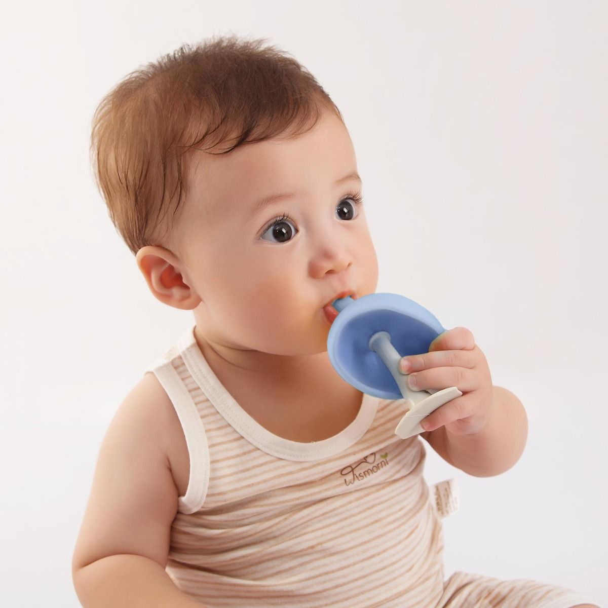This mushroom shaped teether mimics baby's breastfeeding experience to encourage sucking. It's design gently soothes sore gums & features textures that stimulate touch.