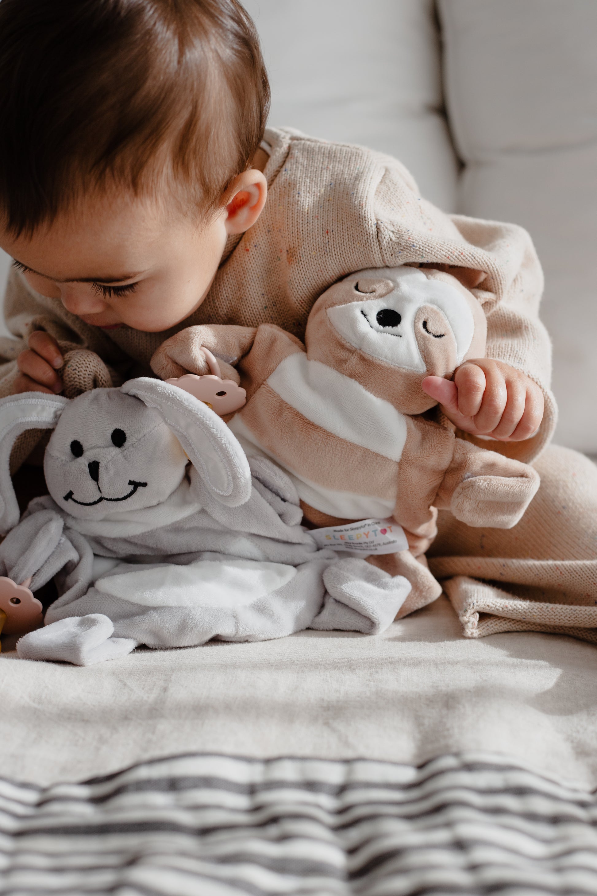 The award winning baby comforters have little velcro paws which hold up to 4 dummies, soothers or teethers. The Millpond Child Sleep Clinic and sleep consultants worldwide recommend our comforters as a way of helping little ones find their dummies easily at night and return to sleep without fully waking.